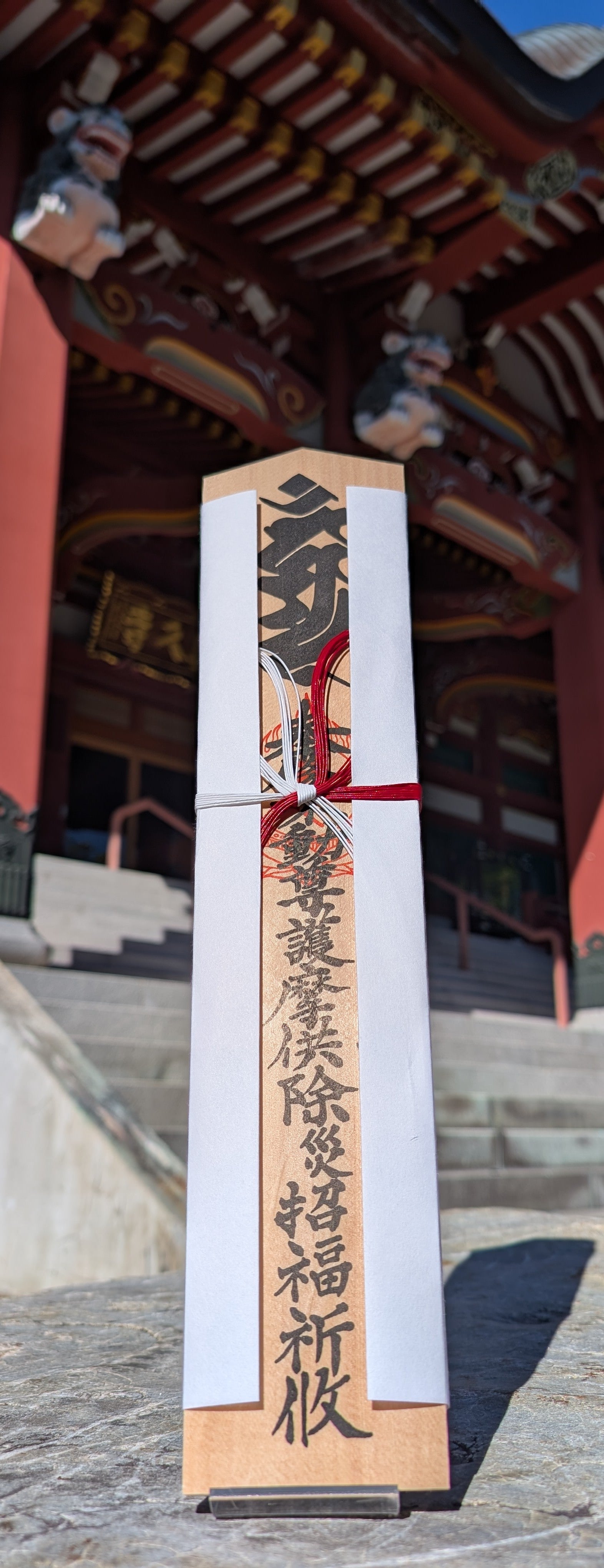 護摩札は護摩の炎にかざし、お不動さまの御分身が宿ったお札です。