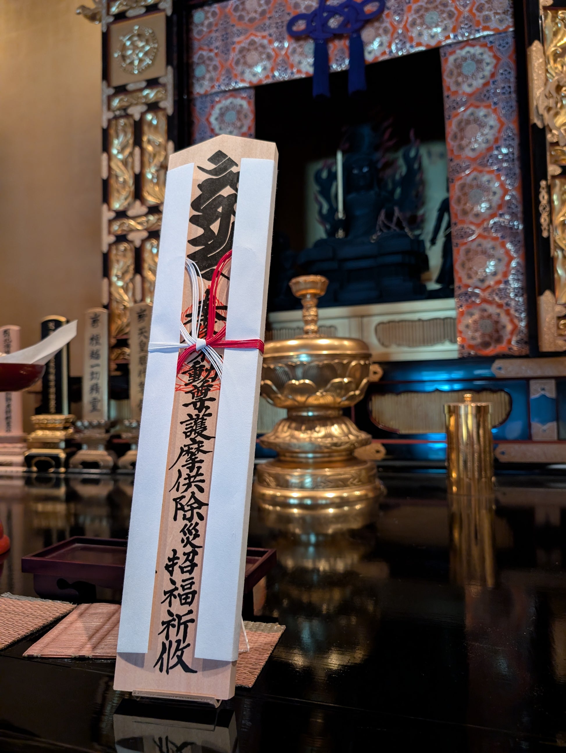 こちらの授与品は不動尊護摩供法要において、護摩加持を行ったお札となります。